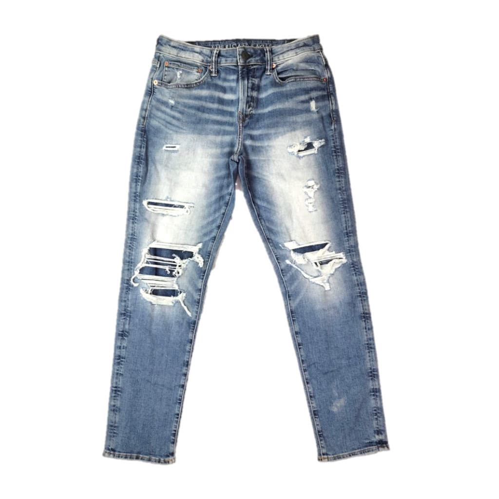 Artistic tears and destruction for a rugged aesthetic.